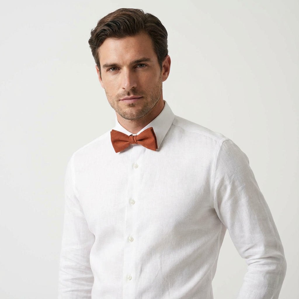 Terrakotta Rustikale Leinen Fliege | Handgefertigt Vorgebunden