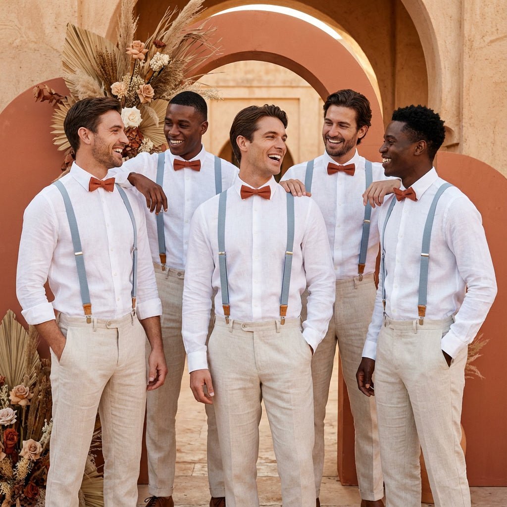 Styles assortis pour toute la famille. Notre ensemble Bretelles Élastiques Grises et Nœud Papillon en Lin est la solution parfaite pour les cortèges de mariage et les photos de famille. Disponible en 9 tailles de bretelles (de 1 an à Adulte XL Grand) et 4 tailles de nœud papillon, nous garantissons un ajustement proportionnel et confortable pour les tout-petits, les garçons et les hommes. Choisissez parmi quatre magnifiques teintes de lin : Vert Sauge, Terre Cuite, Bleu Poussiéreux ou Gris Classique.