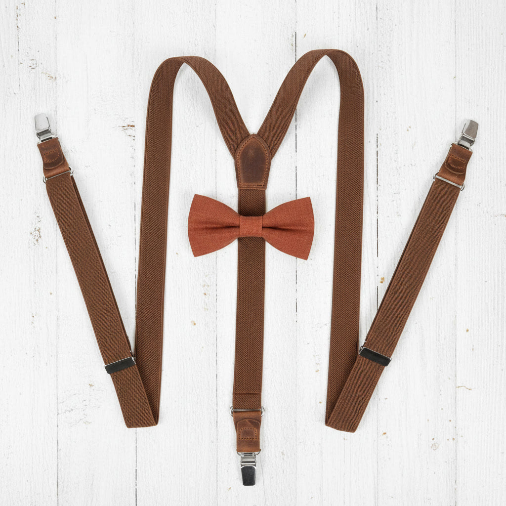 Terracotta Suspenders & Multi-Color Bow Tie Set