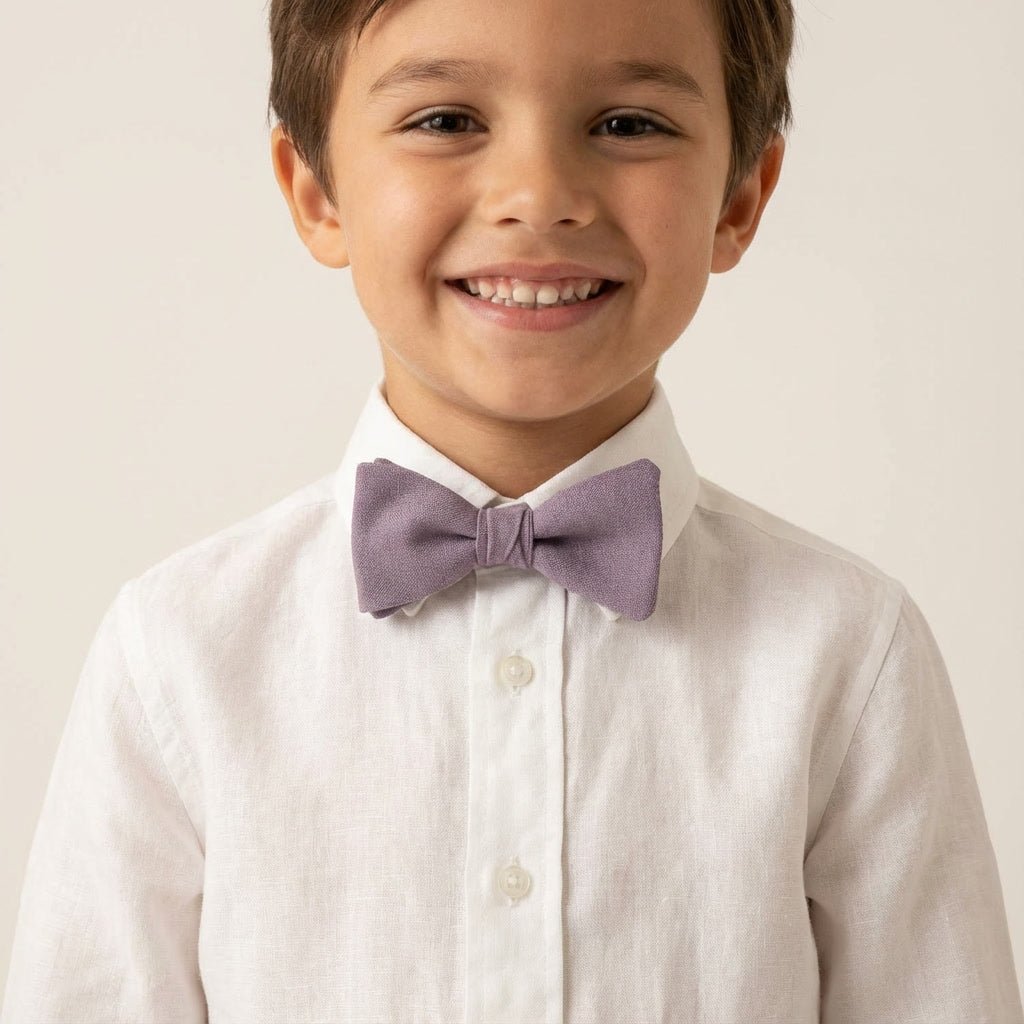 Aggiungi un tocco morbido e romantico al tuo abbigliamento formale con il nostro Papillon in Lino Pre-annodato Viola Polveroso. Realizzato in lino naturale di alta qualità, questa tonalità tenue di malva-viola offre un fascino rustico sofisticato e "perfettamente imperfetto", ideale per matrimoni, feste in giardino e celebrazioni speciali.