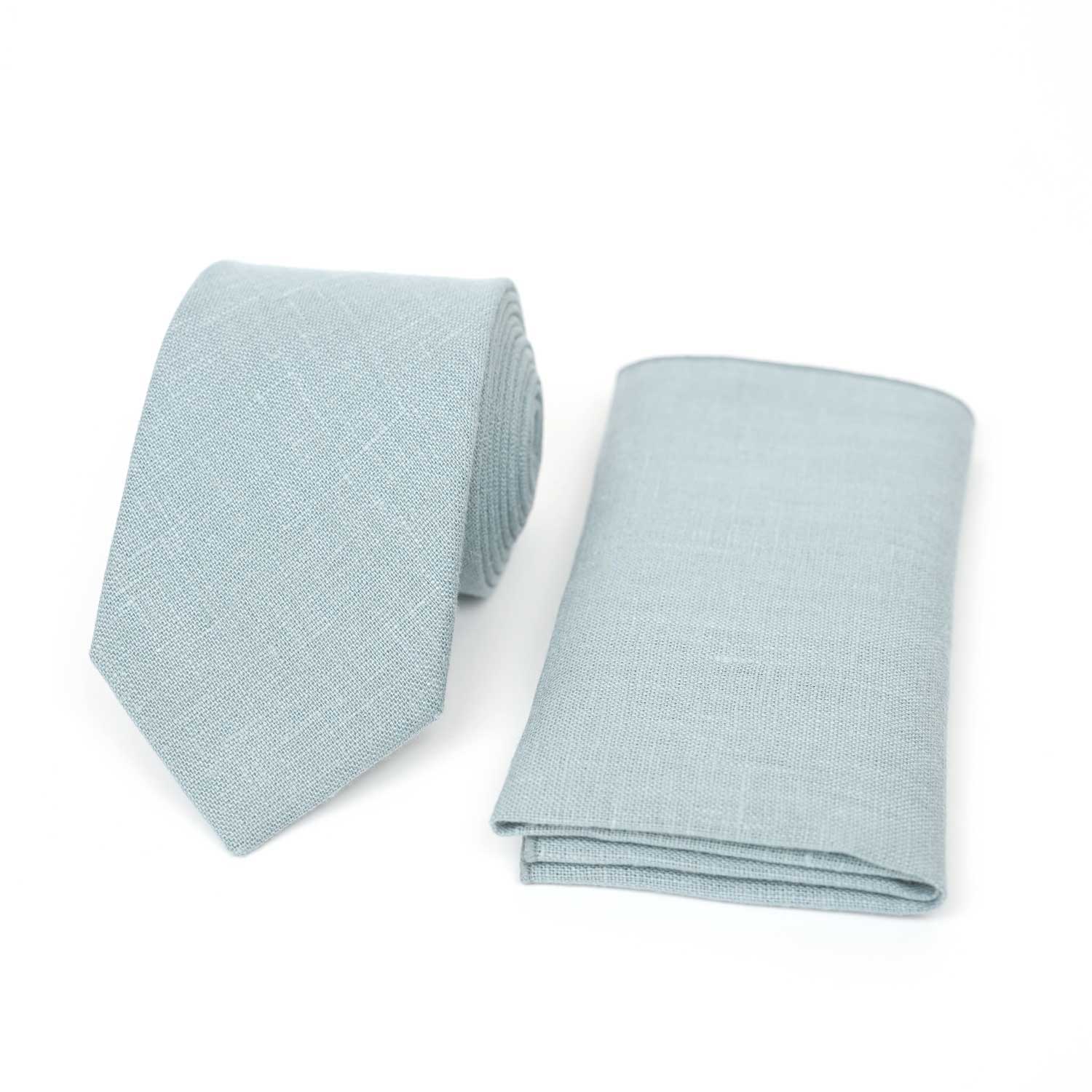 Set di cravatta e fazzoletto da taschino in lino | Blu polveroso, azzurro pallido e verde petrolio